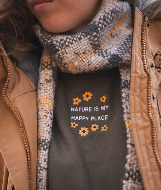 Geborduurde Sweater bloemen - Logo midden - Bio katoen