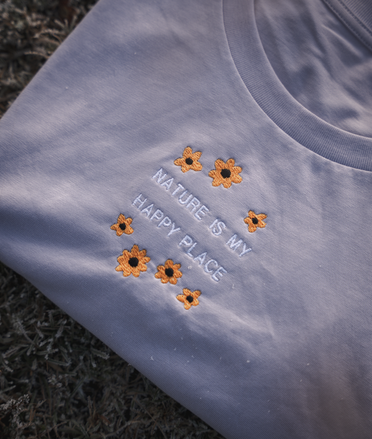 Geborduurd shirt bloemen - Logo midden - Bio katoen